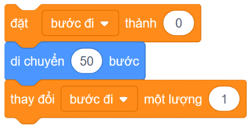 Phương án nào say đây nêu đúng giá trị của biến "bước đi" sau khi thực hiện chương trình dưới?