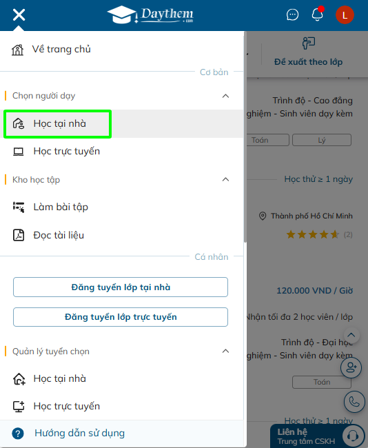 Sau khi đăng tuyển lớp thành công, người học có thể lựa chọn người dạy phù hợp thông qua những cách sau: