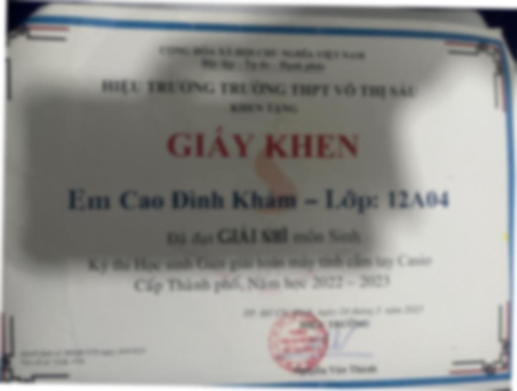 12 năm đạt danh hiệu HSG. Đạt danh hiệu HSG cấp thành phố môn Sinh. Đạt 27+ khối B00