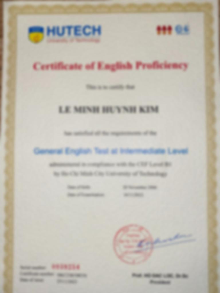 Tôi là Lê Minh Huỳnh Kim, cựu sinh viên trường Đại Học Công Nghệ Thành Phố Hồ Chí Minh. Tôi tốt nghiệp chuyên ngành Hàn Quốc học, song song tôi vẫn đang theo học khóa Ielts.