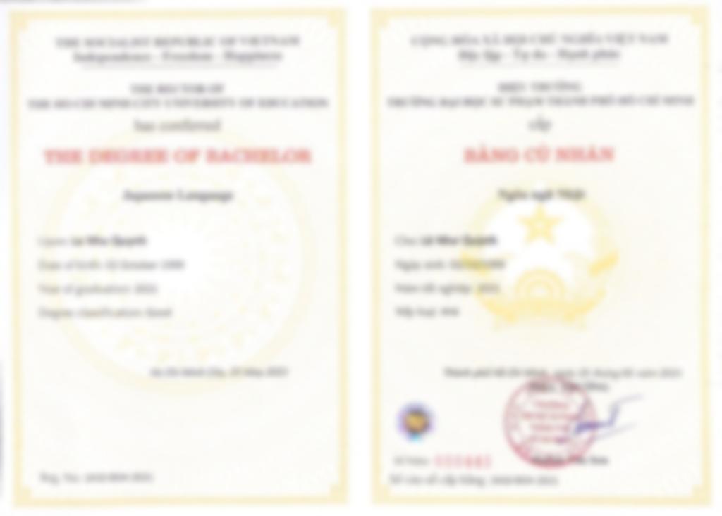 Xin chào Quý phụ huynh, em tên Lê Như Quỳnh, hiện đã tốt nghiệp chuyên ngành Ngôn ngữ Nhật và có hơn 6 năm kinh nghiệm dạy học cho các bé tiểu học 3 môn Toán, Tiếng Việt, Tiếng Anh. Với tính cách yêu trẻ, hoạt bát và siêng năng cùng với khả năng truyền đạt của mình em tự tin có thể giúp các bé tiến bộ từng ngày. Ngoài ra em còn kèm Tiếng Nhật sơ trung cấp cho các bạn muốn học tiếng Nhật. Hi vọng em có thể đồng hành với các bé/ bạn trên chặng đường học tập. 😊