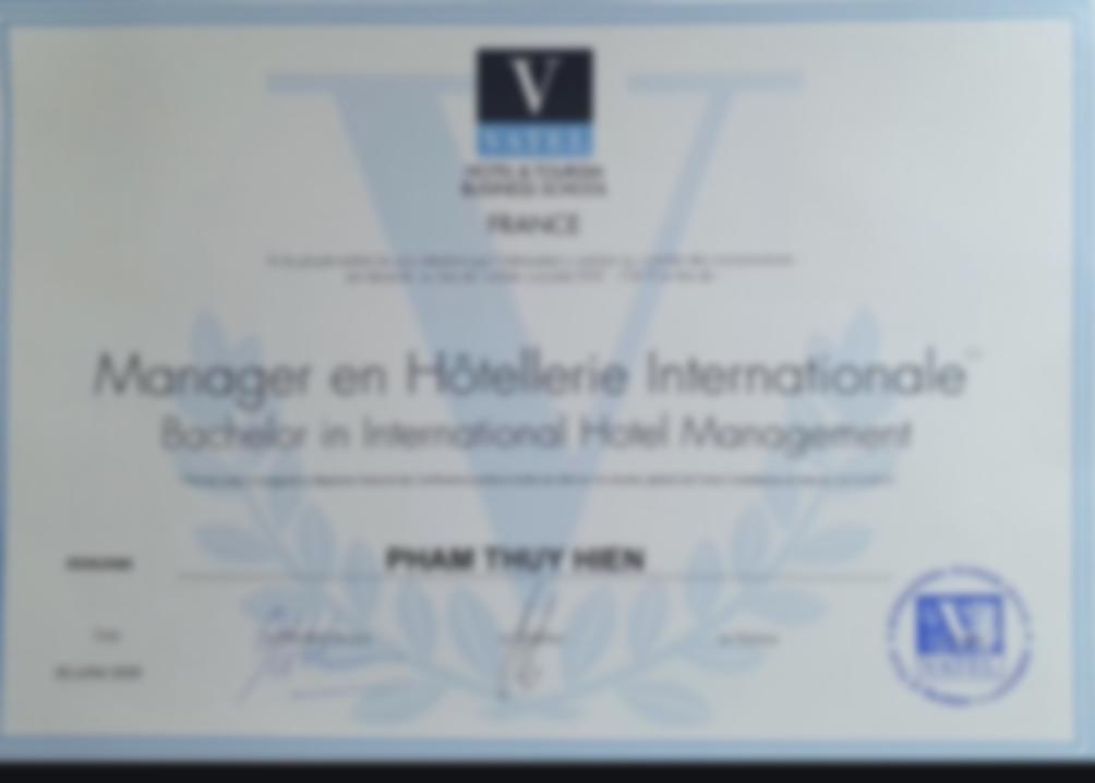 Tốt nghiệp Văn bằng 1 ngành quản trị nhà hàng khách sạn tại Vatel Bordeaux Pháp Từ 2022-đến nay: dạy chương trình tiếng anh cấp 2 và 3 Từ 2023- đến nay: luyện thi ielts