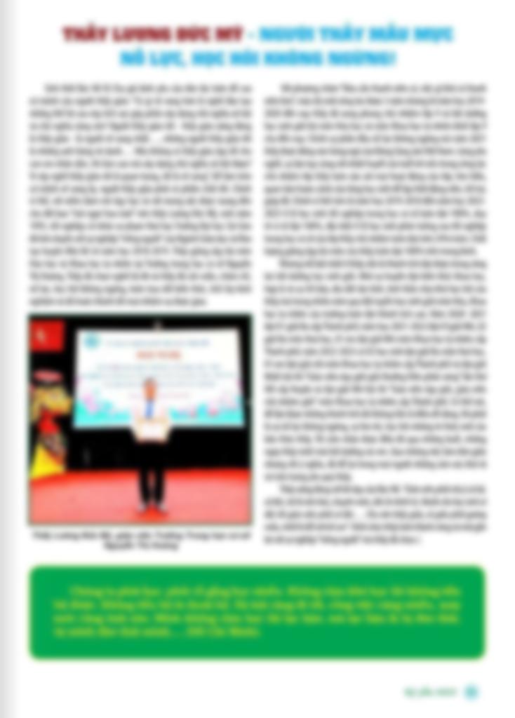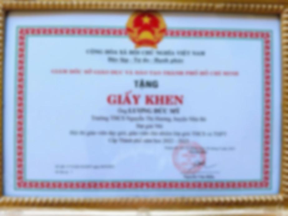 - Giáo viên biên chế đang đứng lớp trường THCS Nguyễn Thị Hương. - Đạt giải Nhì hội thi giáo viên dạy giỏi cấp Thành phố Hồ Chí Minh môn Khoa học tự nhiên, năm học 2022-2023. - Đạt giải Nhất hội thi giáo viên dạy giỏi cấp Huyện môn Khoa học tự nhiên năm học 2022 - 2023. - 5 năm kinh nghiệm giáo viên đứng lớp - GV chuyên luyện HSG cấp Huyện và Thành phố (Năm học 2022-2023: có 2 em đạt giải III HSG cấp thành phố môn Hoá, 2024-2025 có 01 em đạt giải III HSG cấp thành phố môn Hoá ). - GV chuyên luyện thi Đại học. - Thỉnh giảng tại Trường Công Lập Nguyễn Hữu Cảnh.