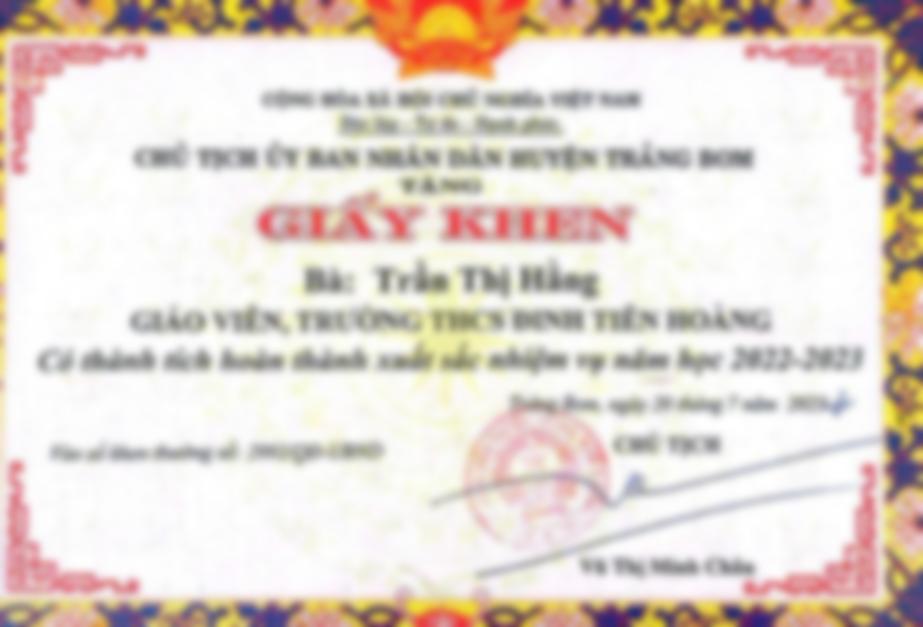 là giáo viên có hơn 10 năm kinh nghiệm, đang trực tiếp dạy học học sinh lớp thcs, là giáo viên dạy giỏi cấp huyện, thành phố, giáo viên hướng dẫn học sinh giỏi cấp Tỉnh, được tặng bằng khen của chủ tịch uỷ ban nhân dân tỉnh đồng nai