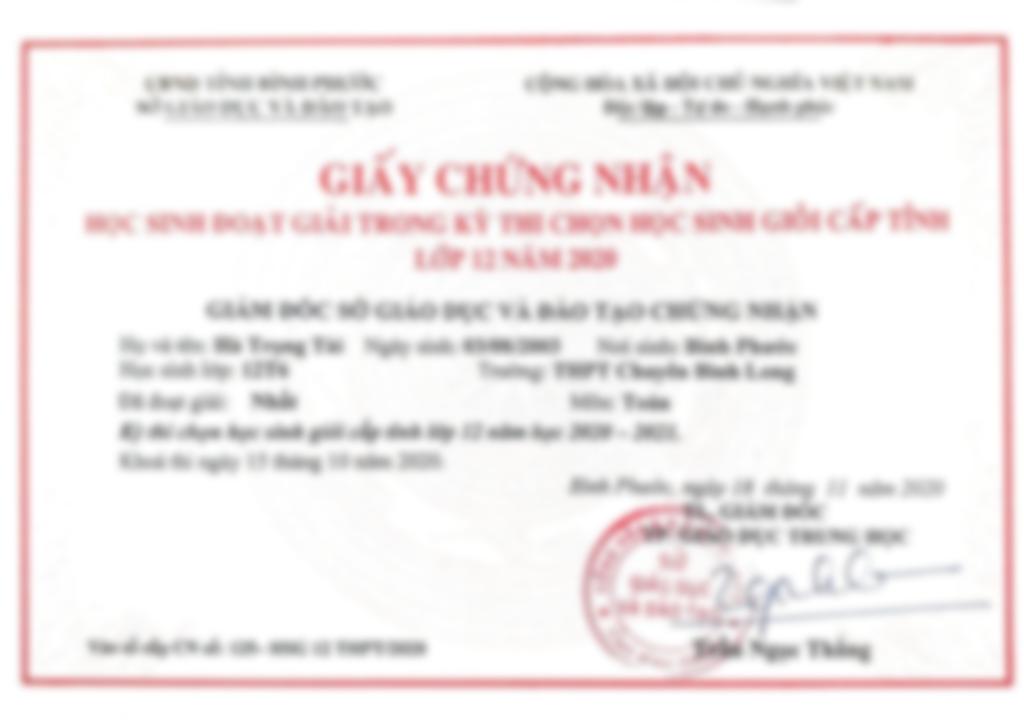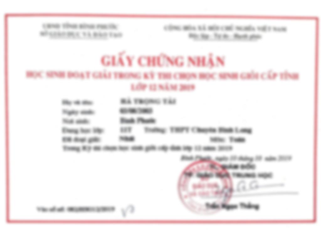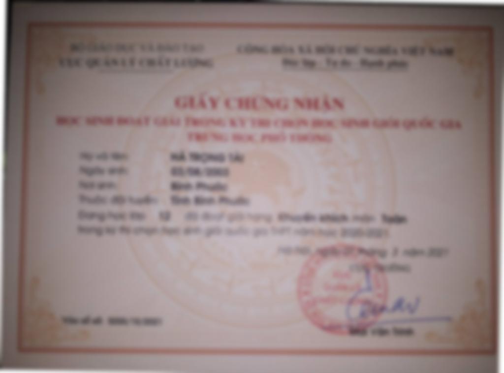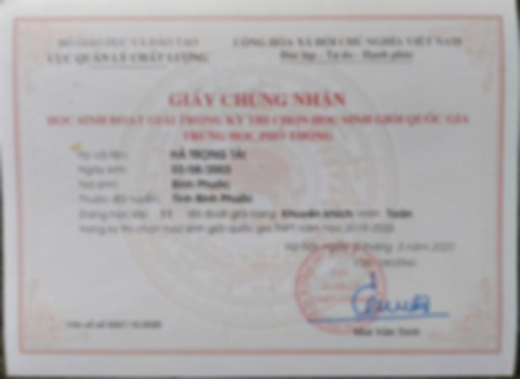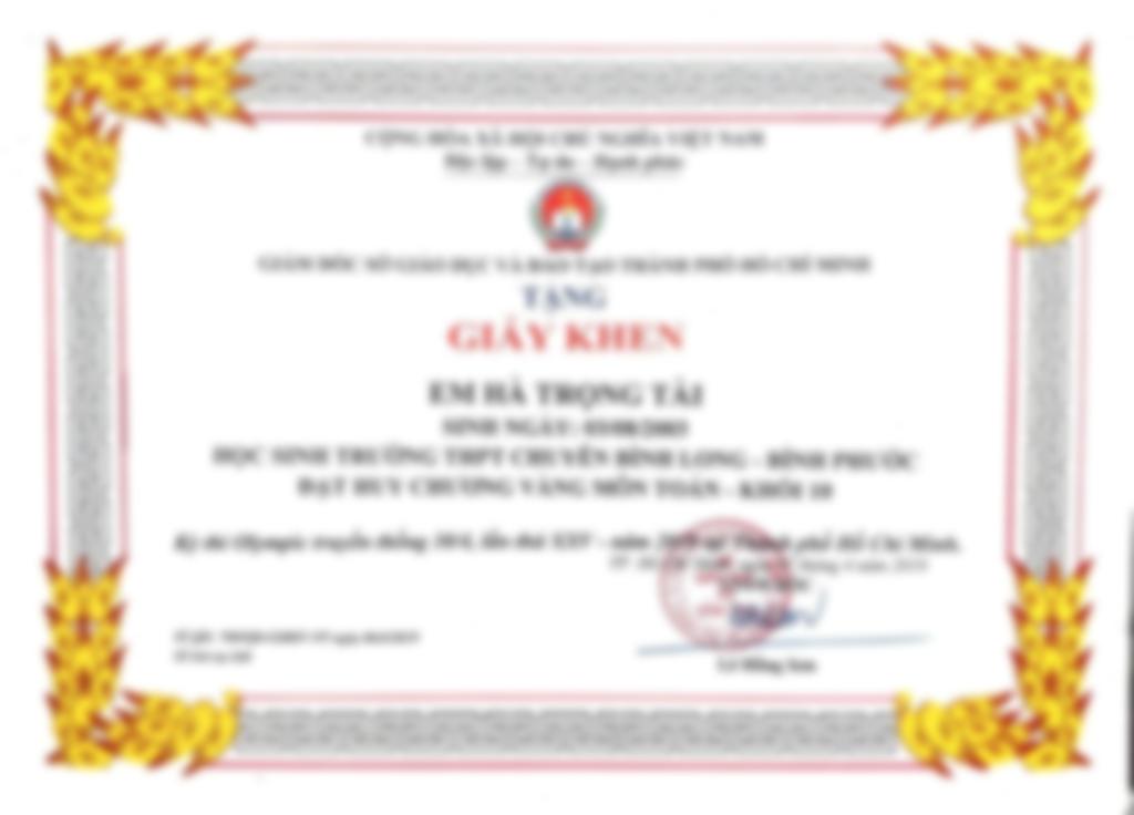 Sinh viên năm 4. Thành viên đội tuyển toán cấp 2 và cấp 3. Các giải đạt được: huy chương vàng môn toán olympic truyền thống 30/4, nhất tỉnh và giải khuyến khích môn toán kì thi học sinh giỏi cấp quốc gia 2 năm lớp 11 và 12. Từng trợ giảng môn toán trong trường cấp 3.