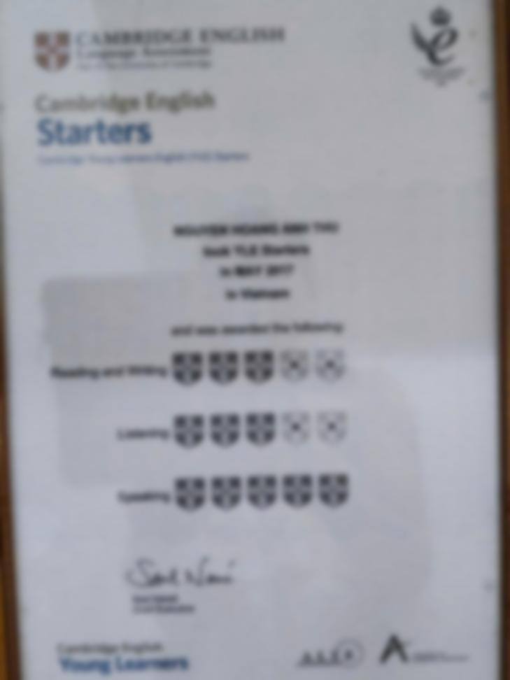 Em hiện tại đang là sinh viên năm 2, chuyên ngành ngôn ngữ Anh. - Đã thi và có đủ các chứng chỉ tiếng Anh quốc tế (Cambridge): Starters, Movers, Flyers. - Đã có kinh nghiệm làm trợ giảng (3 tháng) - Điểm thi THPTQG môn tiếng Anh: 8.0 - Hiện đang có IELTS 5.5 và đang còn tiếp tục học lên 7.0. - Tính cách dễ gần và năng nổ.