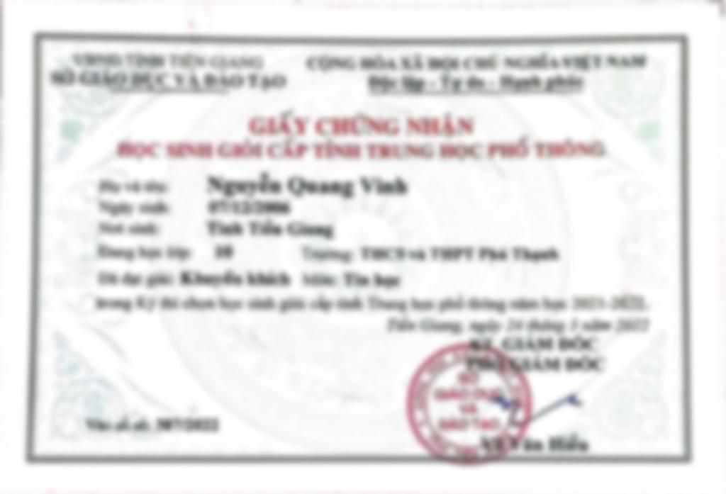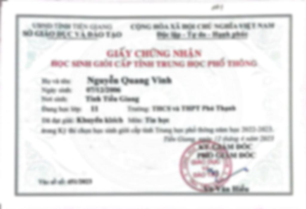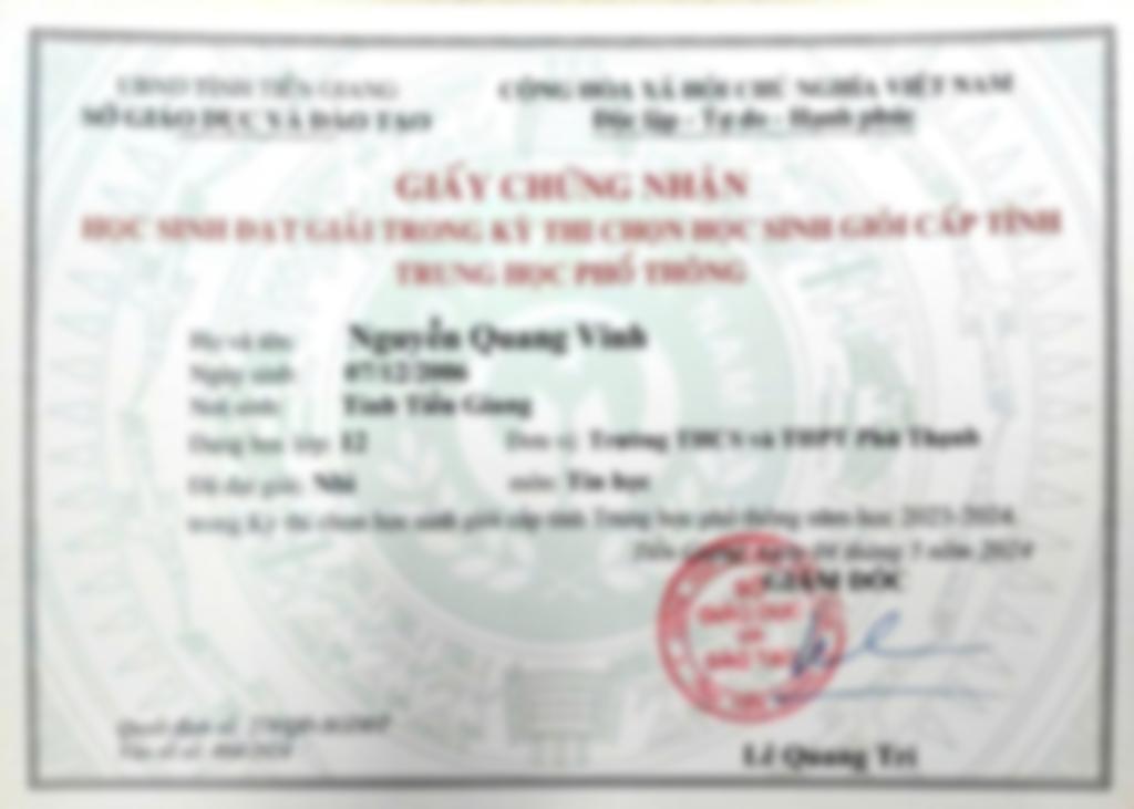 - Đang là sinh viên nam 2 ngành CNTT học tại ĐH Sư Phạm Kỹ Thuật TP.HCM. - Tham gia đội tuyển HSG môn Tin Học đạt giải Nhì cấp tỉnh THCS lớp 9 (18đ / 20đ). Giải Khuyến Khích cấp tỉnh THPT lớp 10 và lớp 11. Giải Nhì HSG cấp tỉnh THPT lớp 12 (15,5đ / 20đ). - Tham dự kỳ HSG cấp Quốc Gia môn Tin Học. - Đã từng tham gia dạy Toán, Tin cấp THCS, THPT. + Toán lớp 9 (Ôn thi chuyển cấp 1 bạn đạt 10đ và 1 bạn đạt 9,5đ). + Dạy bồi dưỡng (ôn thi HSG) cấp tỉnh THCS, THPT (Có nhiều giải thưởng giải Ba và Khuyến khích kỳ thi HSG cấp Tỉnh môn Tin Học của tỉnh Tiền Giang).